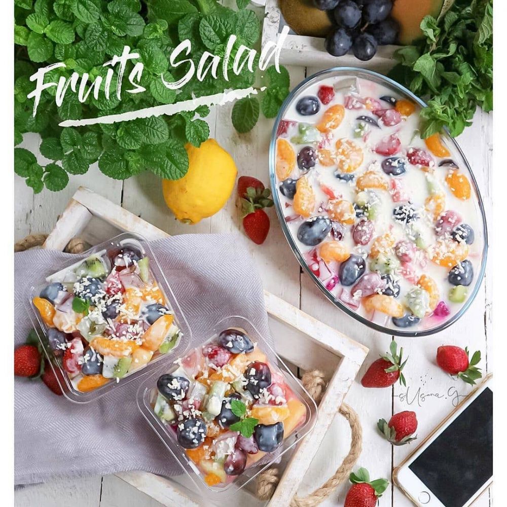 – Tuang sauce dressing kedalam baskom isi buah-buahan yang sudah dipotong aduk rata